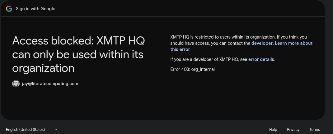 You can’t sign in to this app because it doesn’t comply with Google’s OAuth 2.0 policy.